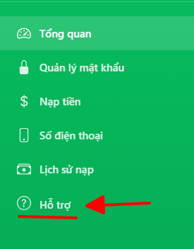 Bên trái có thanh menu vui lòng chọn hỗ trợ