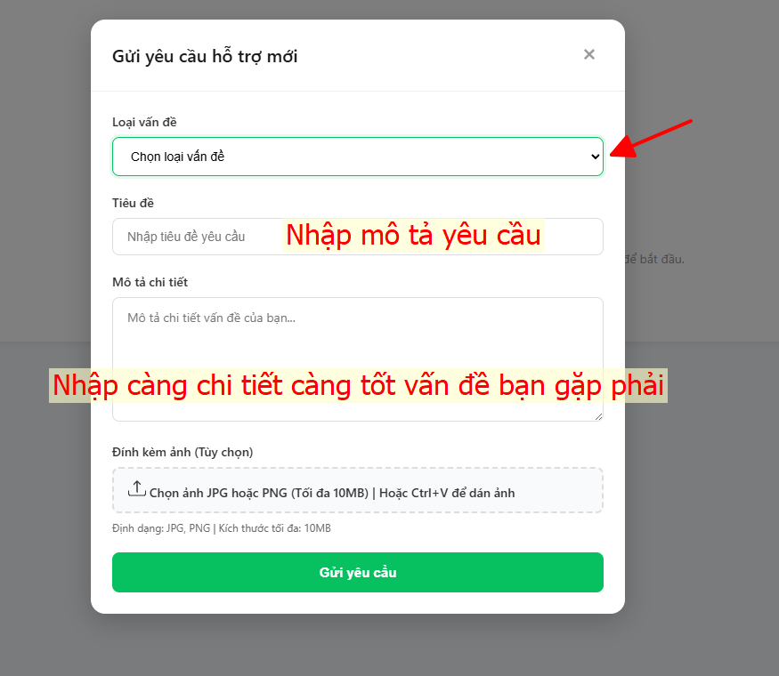 Mô tả thông tin chi tiết của ticket hỗ trợ
