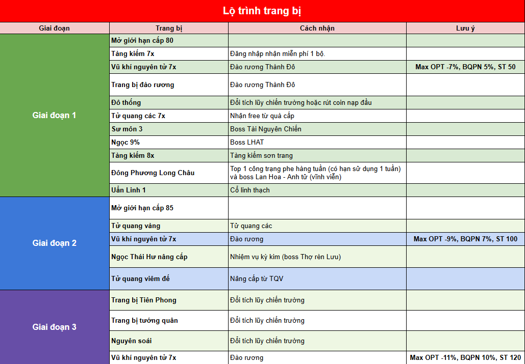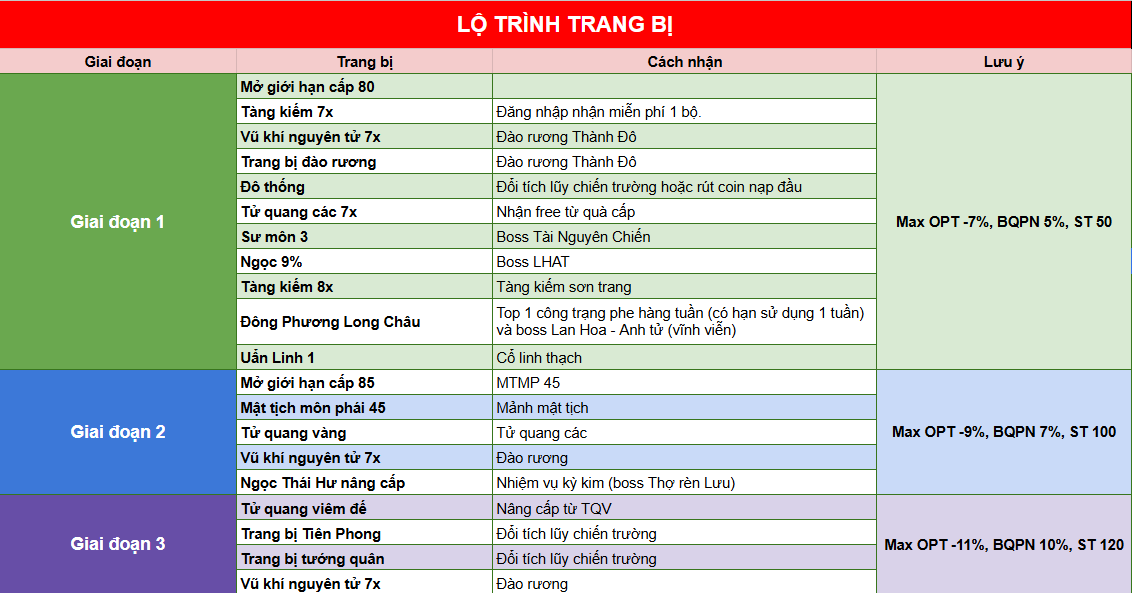 Lộ trình trang bị