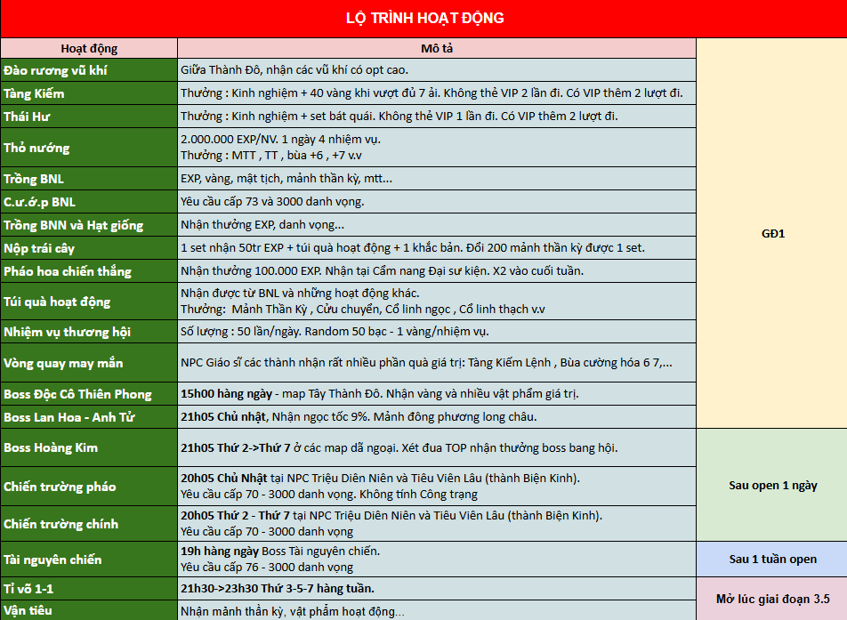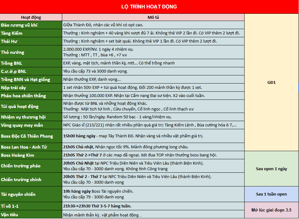 Lộ trình hoạt động